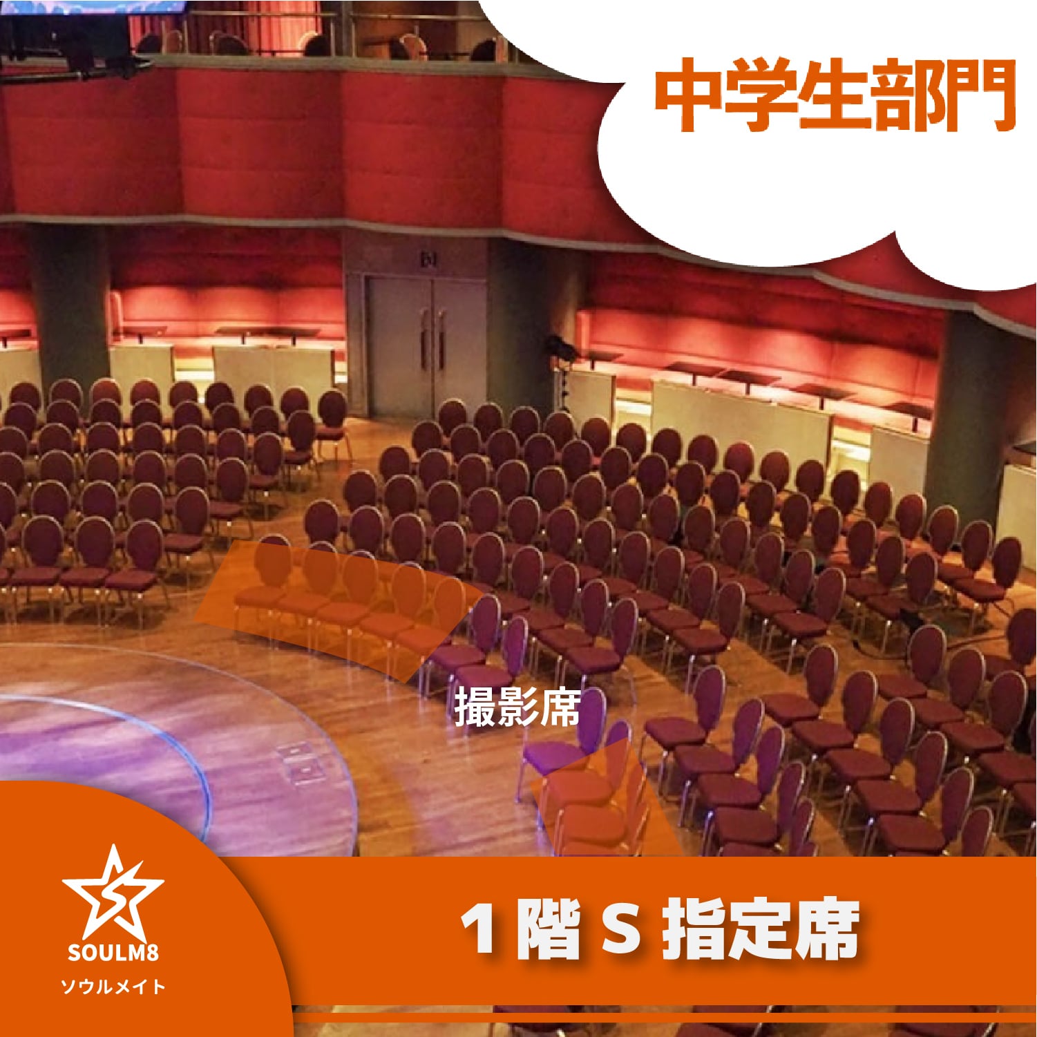 【第2部・中学生部門】ステージの熱気と迫力を間近で感じられる、最前列の特別なお席です。/乳幼児は膝上でお願いします。